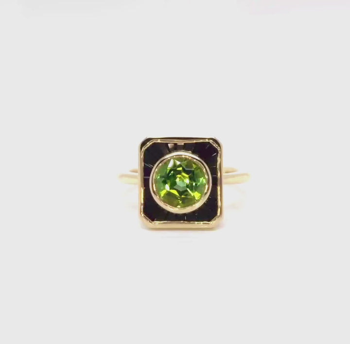 Yellow Gold Green Tourmaline & Black Onyx Ring